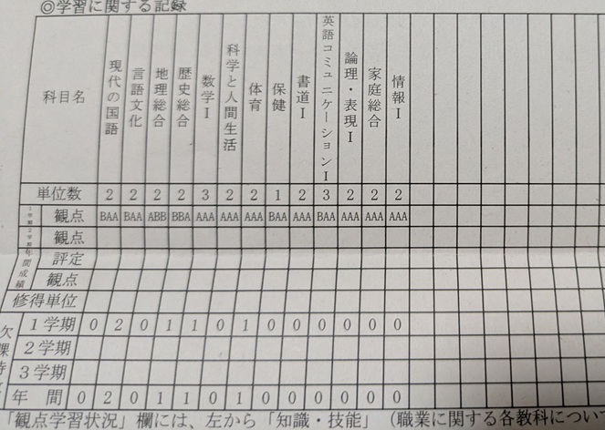 彼女の通う高校は、ちょっと珍しいんじゃないかと思うんですけど、3学期制にも関わらず数値で成績が出るのは年度末の1回だけなんです。