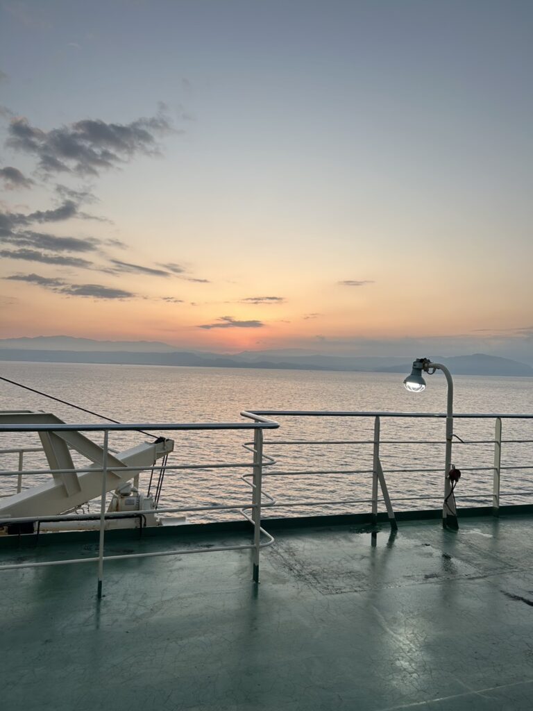 更に、行きと帰りはフェリーの中で寝泊まりするんですよ。夜行列車ならぬ夜行フェリーです。結構凄くないですか?