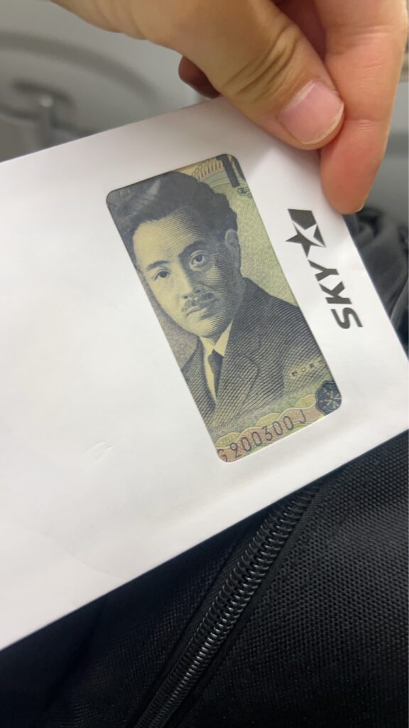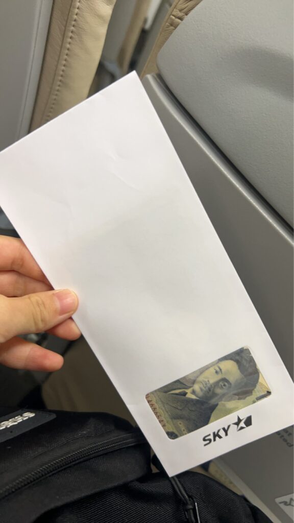 遅延に対するお詫びのようでした。で、Lさんは乗り継ぎ便で羽田に向かったんですけど、その機内でも
